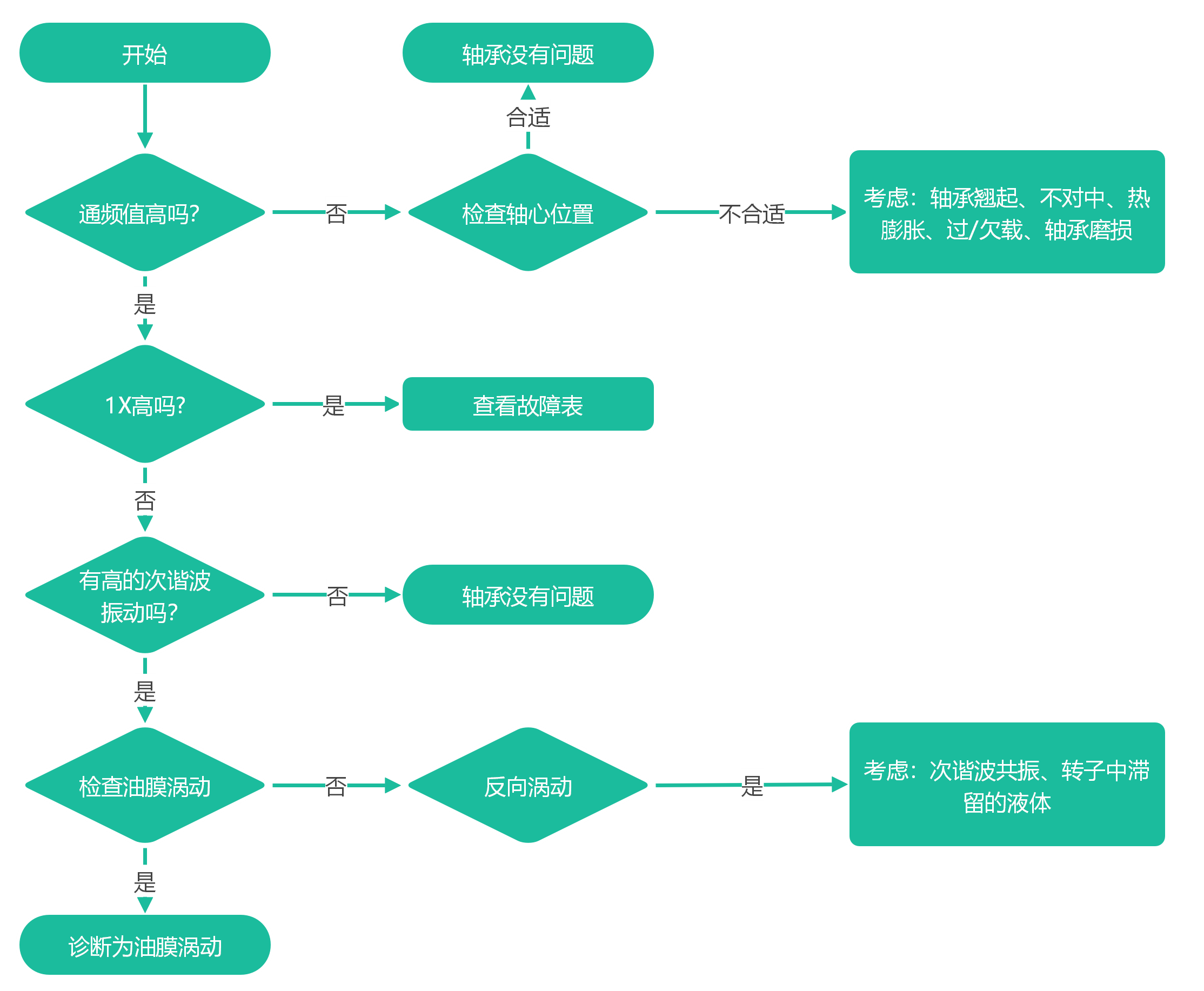 轴承翘起 | 振动传感,温度 | 安装或维护引起的 | 会呈现方向性 | | | | 轴承间隙不均匀;会导致碰摩 |