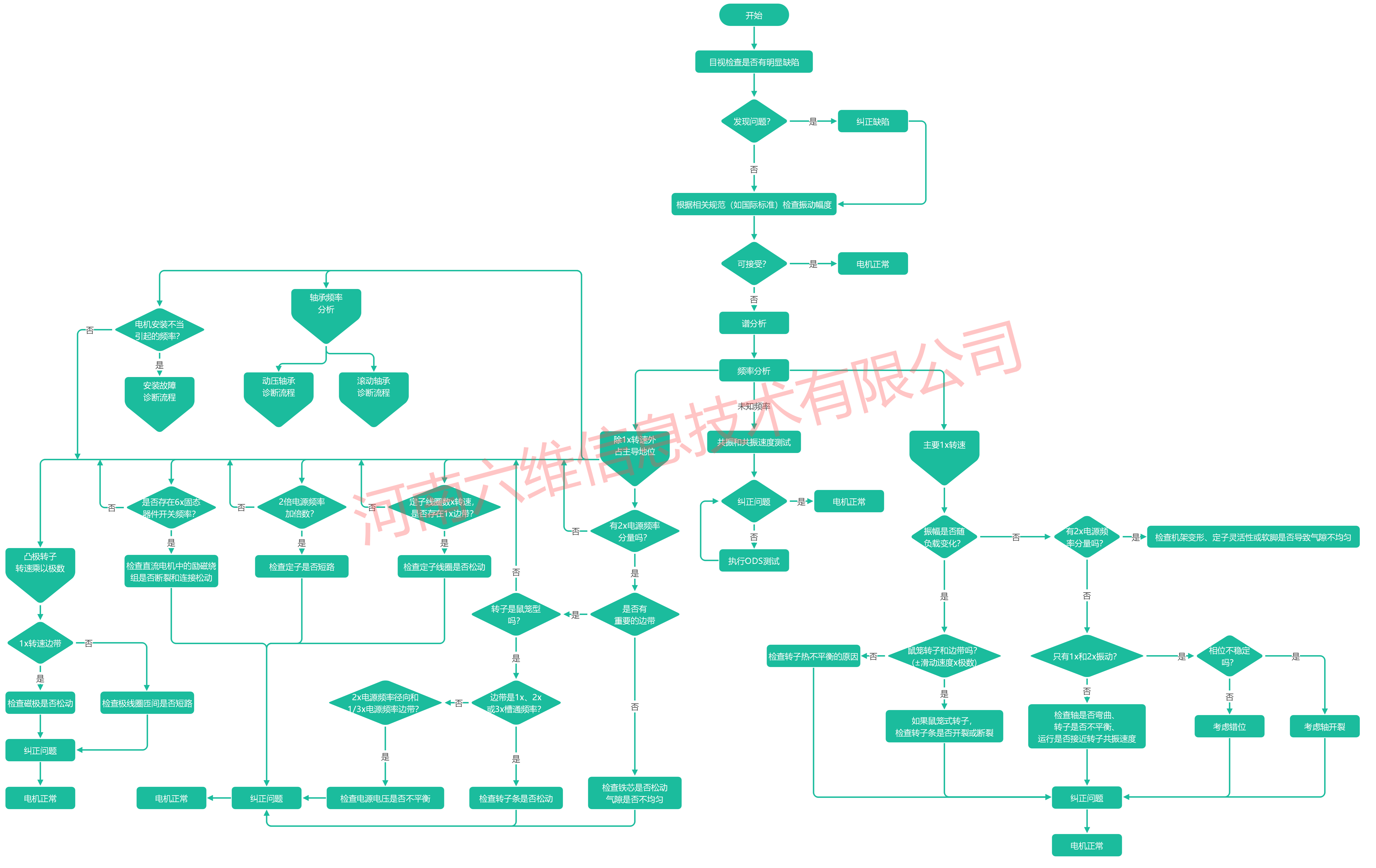 电压不平衡 | 稳定负载条件 | 取决于电压不平衡量 | 2x电源频率径向,1/3x电源频率边带,可能有振幅差拍 | 振动幅度将随着电压不平衡量的增加而增加 | 不适用 | 除非共振速度低于转速,否则会迅速下降 | 如果由于连接松动,可能无法重复 | 电压不平衡可能是由于电源不平衡或电机端子连接松动造成的 |