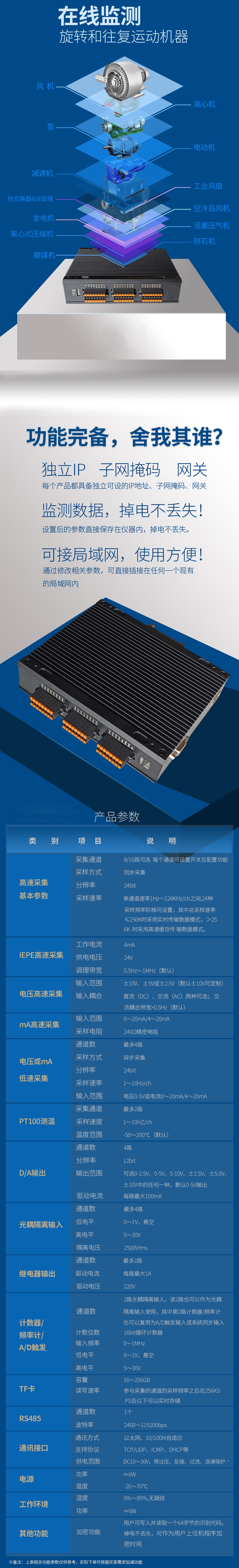 可定制多种附加功能 低速电压、电流、温度PT100、转速、IO、RS485
