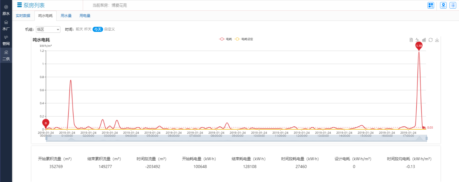 - 能耗统计---对耗电量、吨水耗电量等能耗数据进行统计;